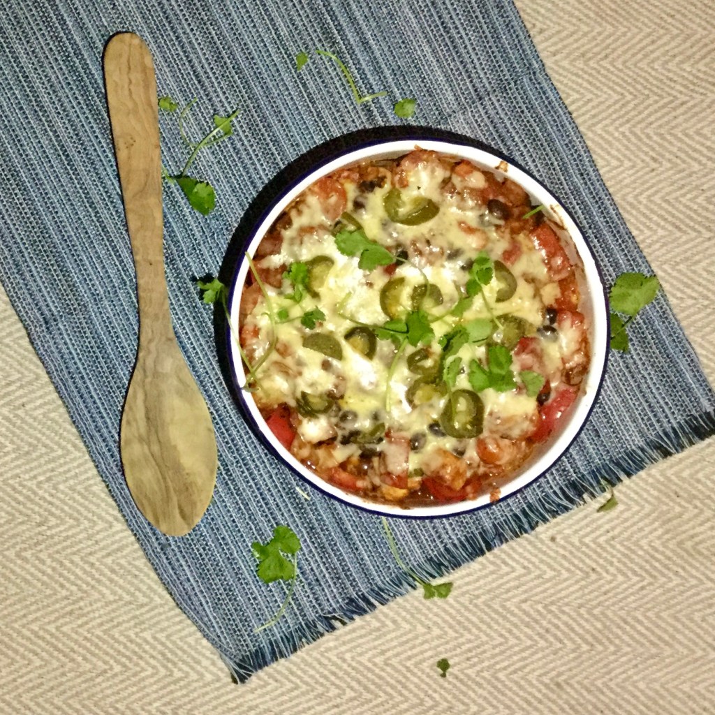So, I have made a few swaps in order to still get the flavours of an enchilada but healthy enough that it doesn’t have to be just an occasional treat. By for going the wraps and making it into a sort of bake, it makes this dish far less heavy and if you are carb watching, much less carby while keeping the flavour of an enchilada.
